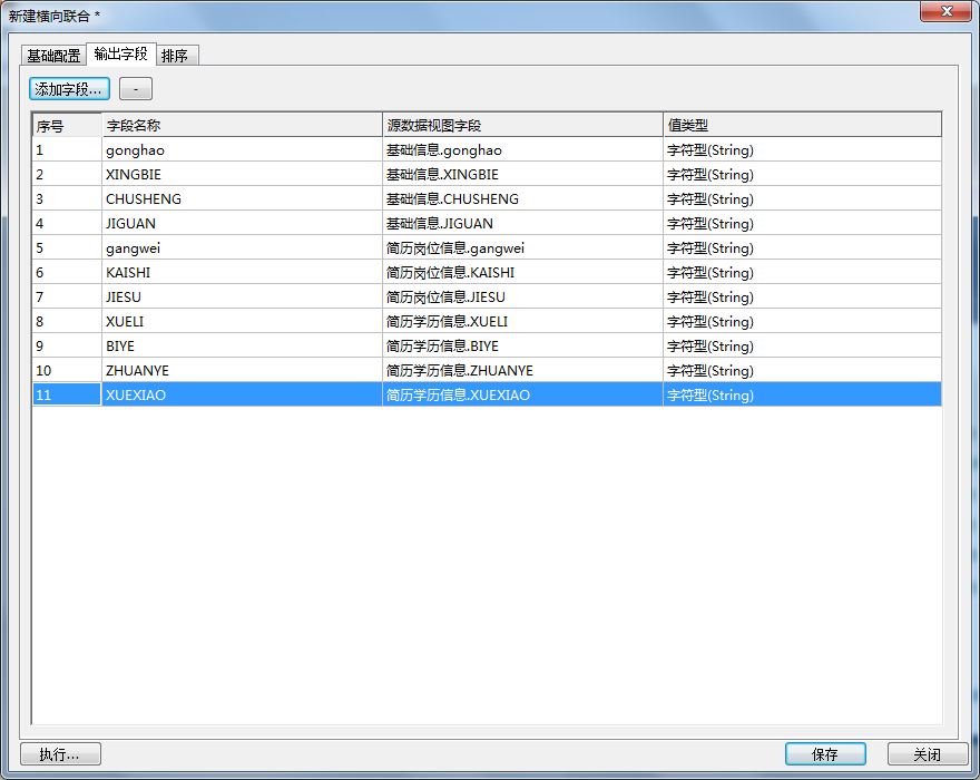 需要根据业务场景选择需要输出的字段,可以选择主表和从表的任意字段。