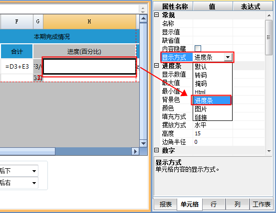 (1)将 H3 单元格的显示方式设置为“进度条”,如下图: