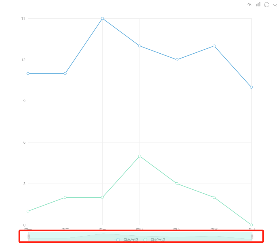 内置数据区域缩放:内置于坐标系中,启用后用户可以在坐标系上通过鼠标拖拽、鼠标滚轮、手指滑动(触屏上)来缩放或漫游坐标系。