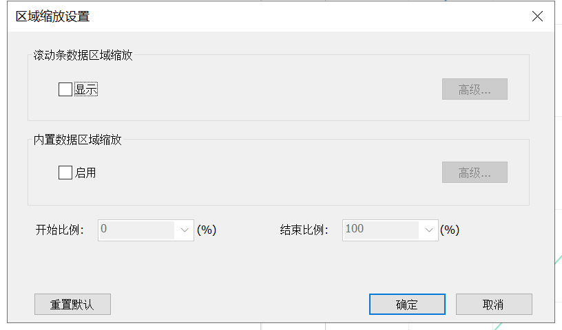 开始比例:数据窗口范围的起始百分比,默认为0%。