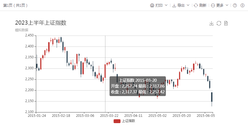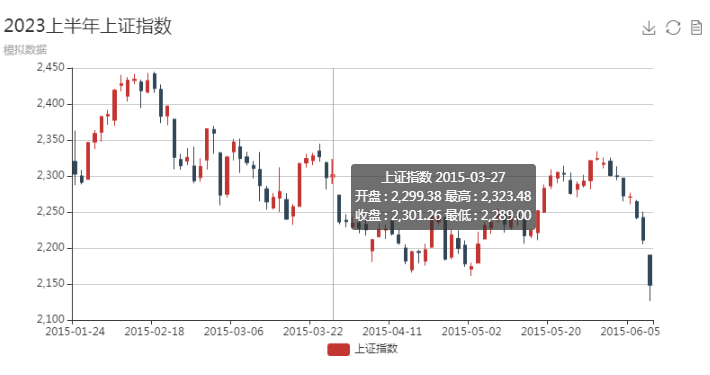 以K线图的方式展示“当年上半年上证指数”,效果如下:
