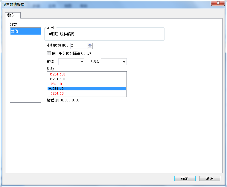 负数 | 负数数值的显示样式 |