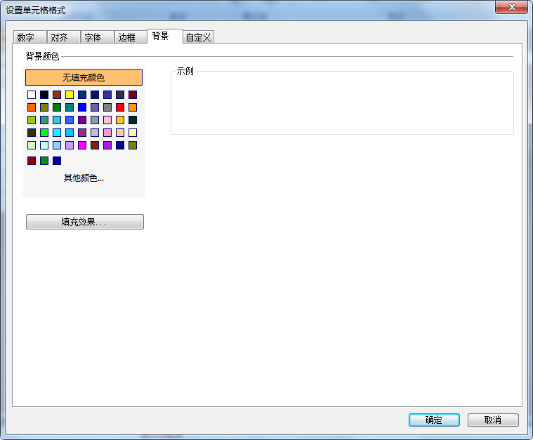 方法二:通过单元格属性中的[背景]属性,如下图: