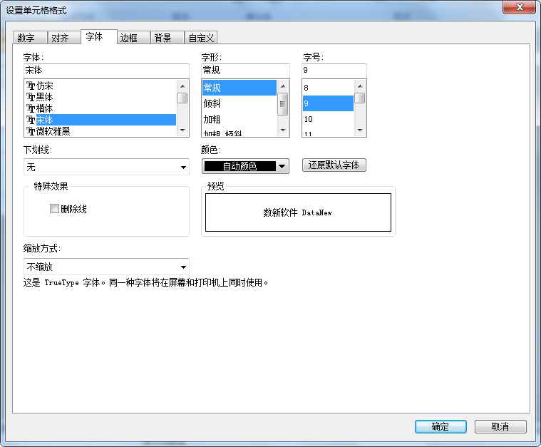 也可以通过菜单工具栏上的[格式]按钮或单元格右键选择[设置单元格格式],进入[字体]tab,如下图: