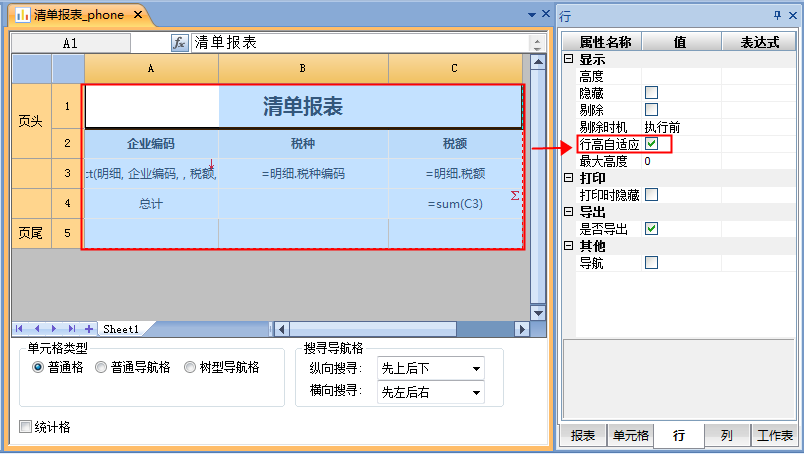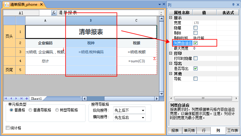 模板地址:应用空间\lczReport\初级教程\清单报表_phone.hte