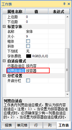 4)工作表的列宽自适应模式设置为“按容器”,如下图: