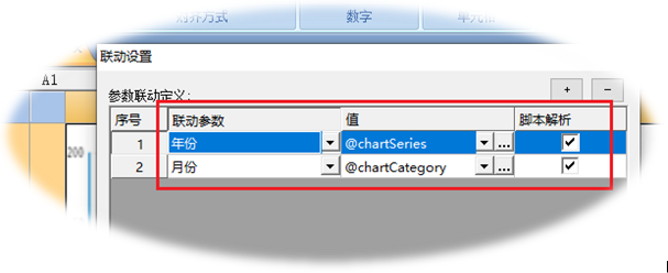 执行菜单项“联动设置…”,在弹出的对话框中设置如下: