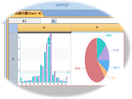添加两个图表后,场景报表设计界面如下图: