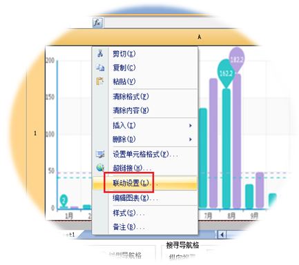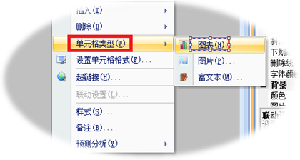 把豆腐块设置成为Chart类型,跟其它报表操作方式一样,鼠标邮件该豆腐块或主菜单“插入/图表”。下图示范右键菜单: