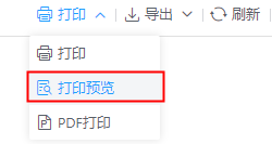 报表执行后,点击工具栏打印下拉菜单中的“打印预览”功能,如下图: