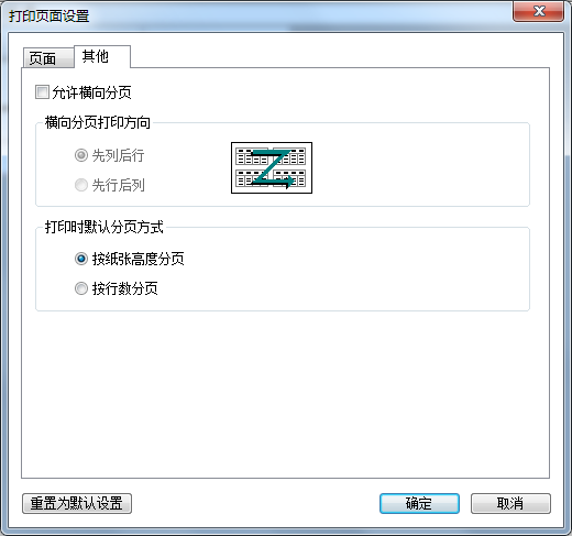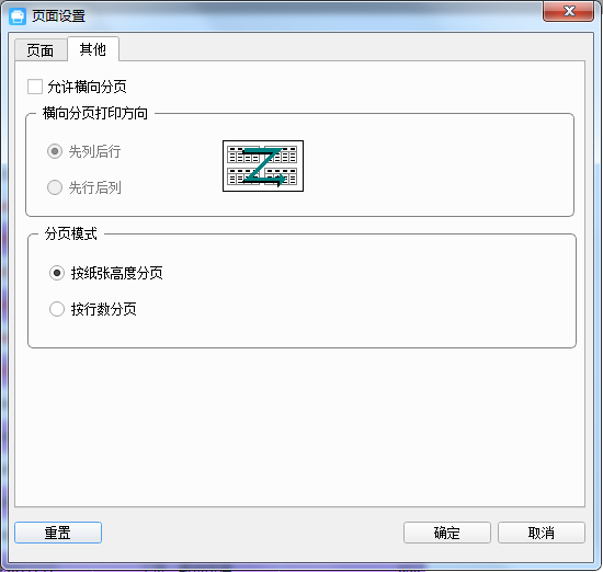 横向分页是在报表宽度超过页面的宽度的时候的特性,勾选后支持“横向分页打印方向”:先列侯航、先行后列。