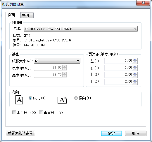 如果点击上图菜单的“打印”菜单项,就会直接出现打印设置对话框,如下图: