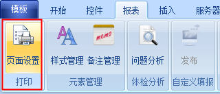 报表设计时和打印时均支持打印页面设置,默认使用设计时的页面设置。