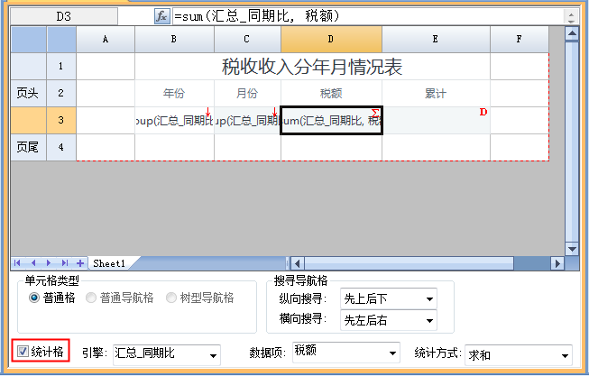 所谓的累计,就是将每层与上一层数据相加得到这一层的数据结果。在地税业务中,主要为累计报表,在累计列中值为当年1月份到当前月份的税额汇总值,在实际做报表过程中,可以通过当月税额加上上月累计税额即为当月累计税额。
