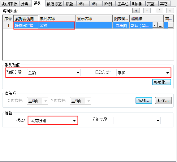 - 系列名称使用静态固定值“金额”;