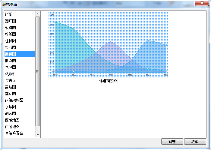 工具栏选择[插入>图表],选择”面积图”类型,如下图: