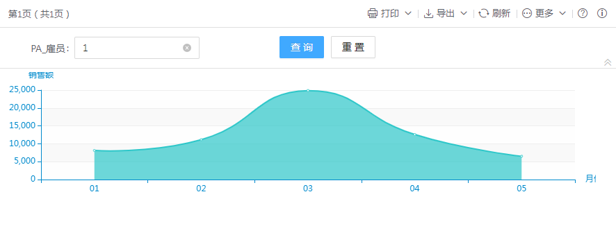 以面积图的方式展示雇员月销售情况,效果如下: