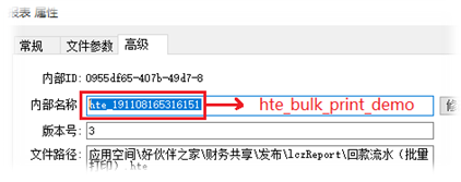 制作一张含参数年份和月份的清单报表,因为模板的内部名称是自动生成的,我们可以修改为一个比较容易辨别的名称,例如修改为“hte_bulk_print_demo”: