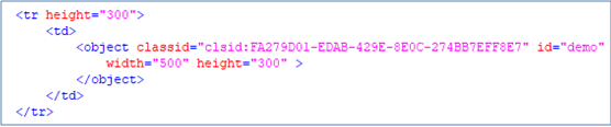<object classid="clsid:FA279D01-EDAB-429E-8E0C-274BB7EFF8E7" id="demo"