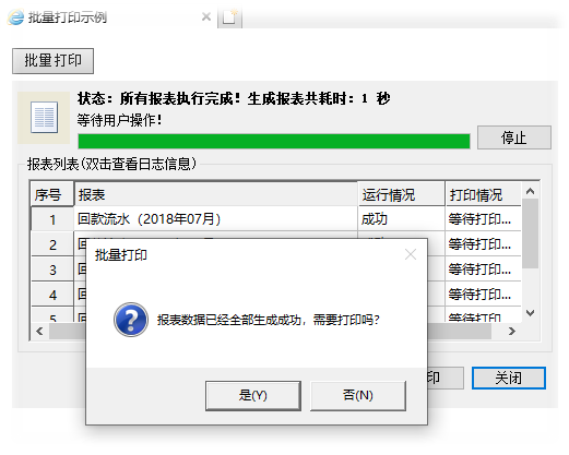 点击“批量打印”按钮,界面显示进入生成环节,并在生成完毕后出现提示框询问用户是否要进行打印?