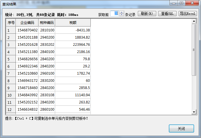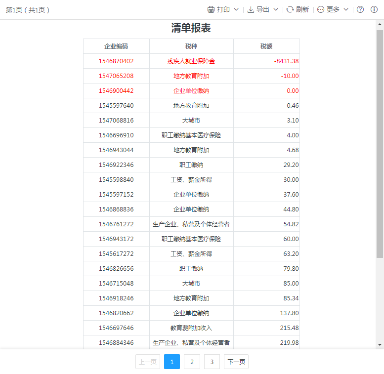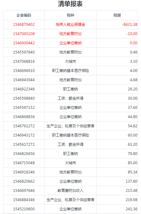 企业税额为例,查看各企业不同税种的税额明细,效果如下图: