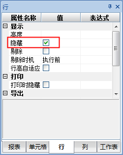 以上报表数据最终执行时若不想显示出来,可以选中以上区域单元格设置为行“隐藏”。如下图: