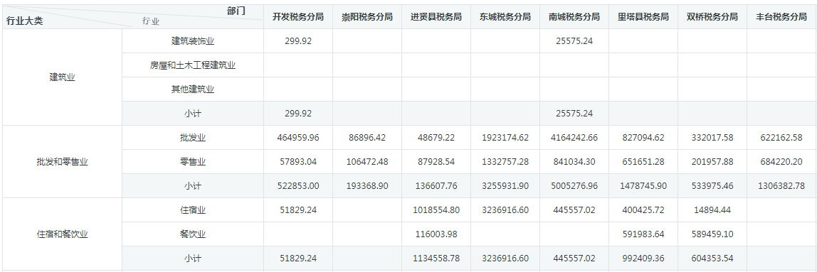 以“行业”进行纵向扩展,以“部门”进行横向扩展,效果如下图: