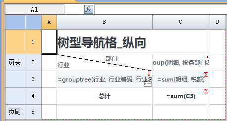 (3)纵向导航格可以自动根据层次进行缩进(偏移);横向导航格可以自动形成复杂列头,列头会自动进行横向或纵向单元格合并;