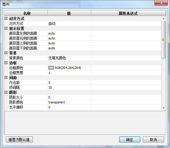5)高级:可以对图例进行背景、边框、间距、阴影等进行配置,如下图:
