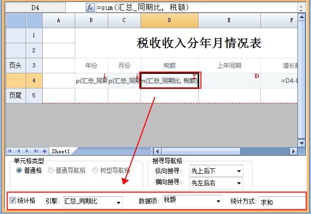 2)D4单元格设置为“统计格”。