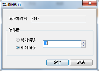 在“增加偏移行”窗口中设置“相对偏移 -1”,如下图: