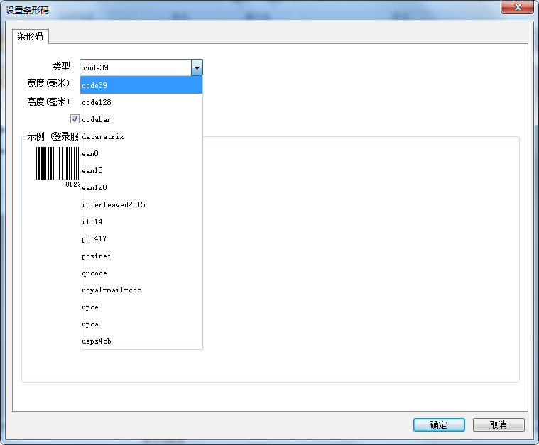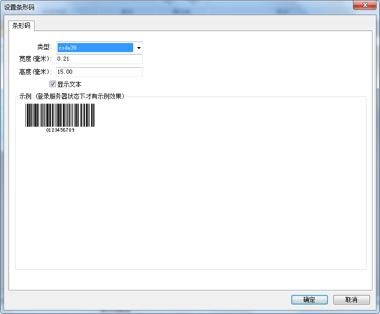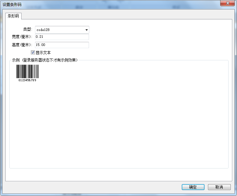 注:可自定义条形码的宽度和高度,示例使用的是默认设置,同时可根据需要选择是否显示文本(这里指数字)。