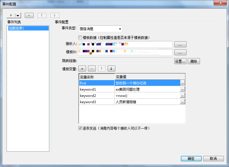 逐条发送 | 不勾选时消息内容是取第一条发送的,勾选时可以实现每个接收人接收到的消息内容不一样。 |