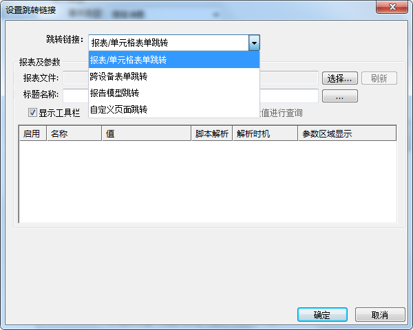 需要为消息配置超链接时,点击跳转链接后的设置按钮进行配置即可,支持链接到报表/单元格表单、跨设备表单、报告模型和自定义页面,如下图: