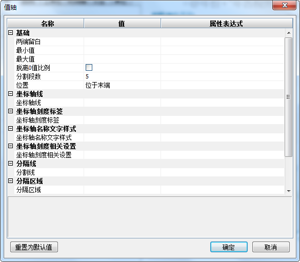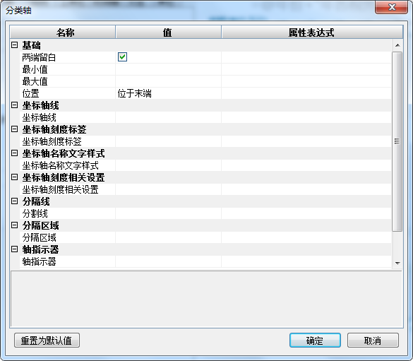 选择“X轴”时,可针对X轴进行相关设置,如下图: