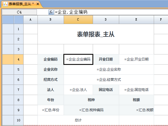 以企业税额为例,主表显示企业的基本信息,子表显示企业的税额明细,如下图: