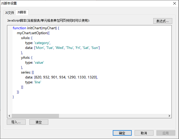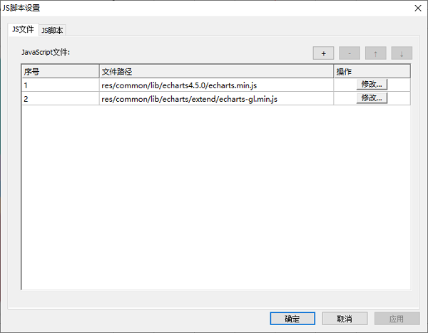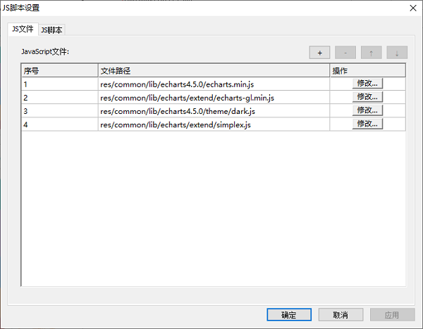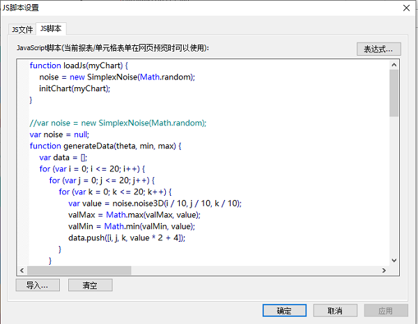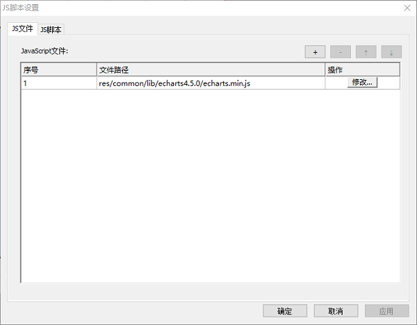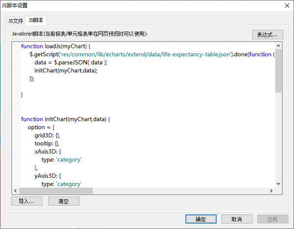 点击报表“JS脚本”弹出JS脚本设置窗口,进行JS文件引用,也可进行JS脚本编辑:
