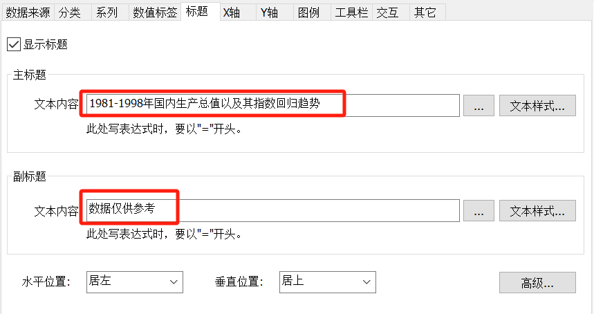 同时用户可设置图表样式的高级属性: