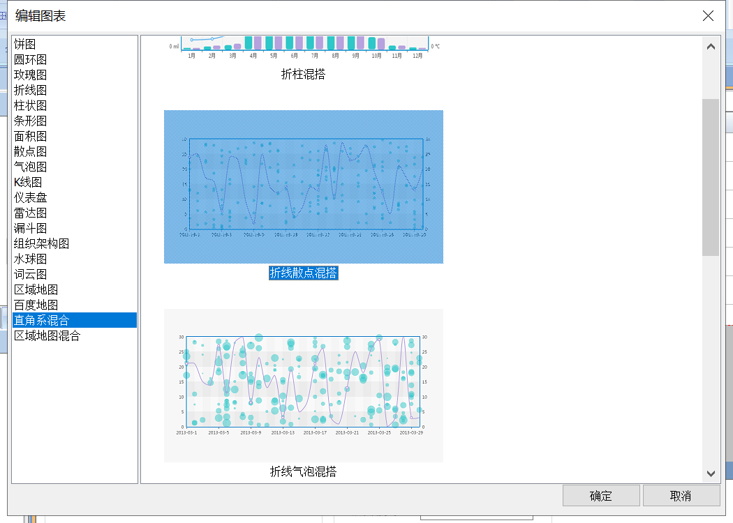 折线散点图混搭图是折线图和柱状图的结合图表,可按需选择折线样式或散点样式进行数据展示,支持多系列数据配置。